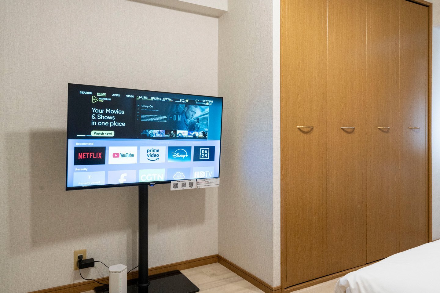※こちらの物件にはテレビではなくアンドロイドモニターが設置されています。 テレビのチューナーは入っていないので地上波は映りませんが、 Netflixやprime videoなどご自身のアカウントで視聴でき、Youtubeなども無料でみることができます。