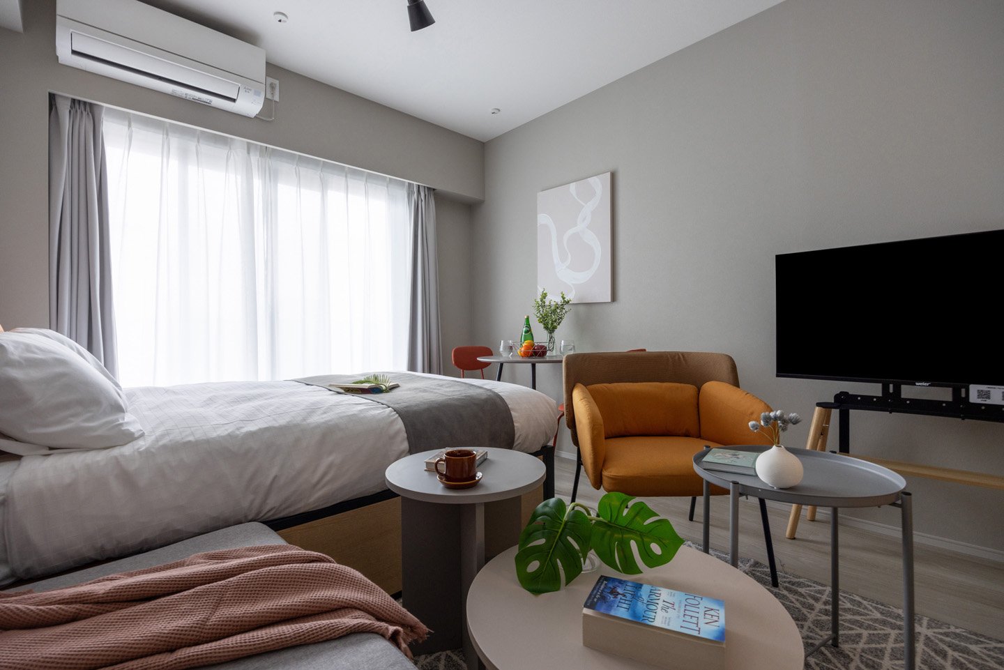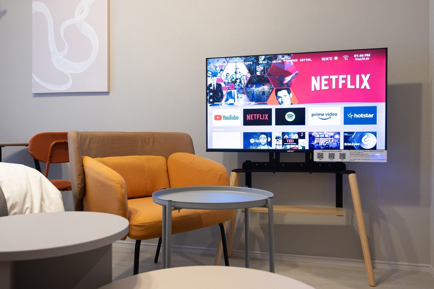※公寓內有一個安卓顯示器,而不是電視。