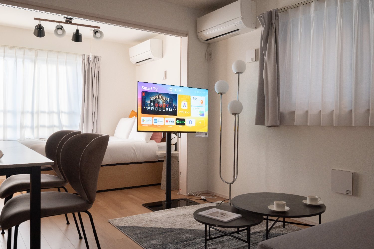 *此房源配備的是安卓顯示器而非電視。由於電視沒有調諧器,您將無法接收地面廣播,但您可以使用自己的帳戶觀看 Netflix、Prime Video 和其他內容,也可以免費觀看 YouTube。